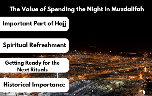 Staying in Muzdalifa gives pilgrims a chance to remember Allah, pray, and feel closer to Him.